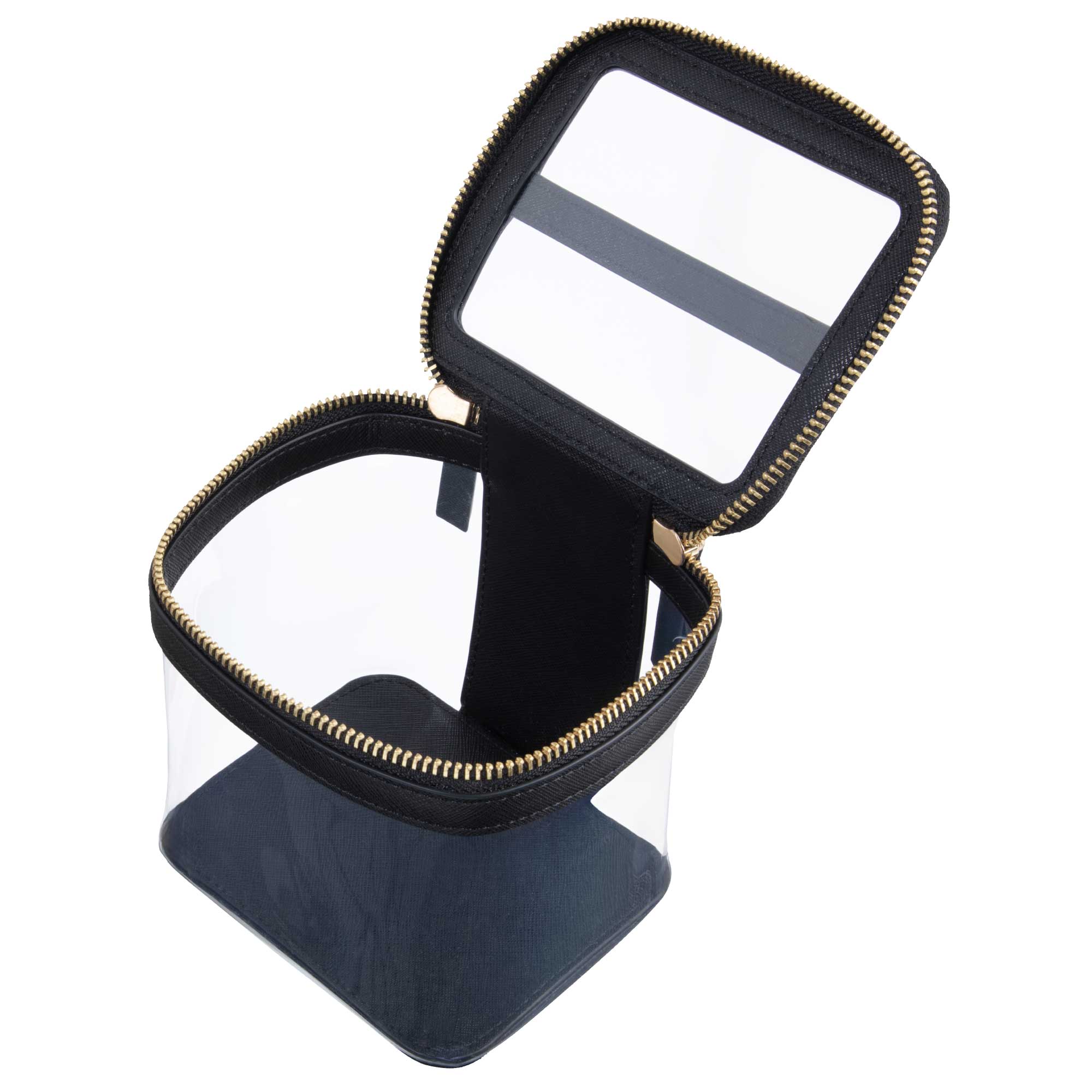 Upgraded style with a top handle. The Clarity Mini Train Case is our sweet smaller companion to the Jumbo Train Case. It's the perfect size for organizing lipglosses, nail polishes, perfume bottles or makeup, either at home or on the go. Fits neatly inside the Jumbo for storage.